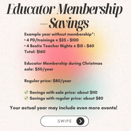✨ Includes trainings and educator-focused gatherings like Bestie Teacher Nights.