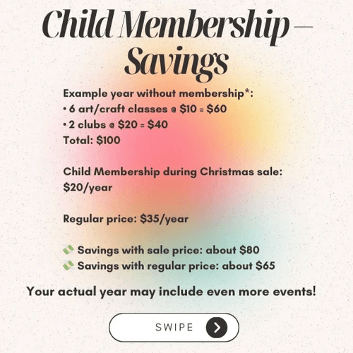 ✨ Families typically attend multiple classes and clubs annually, and this membership helps you save while keeping learning fun and consistent.