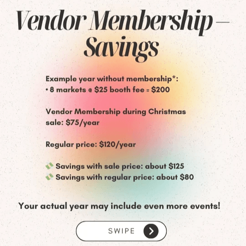 You’re a small business owner or creative who plans to vend at multiple markets. This membership offers major savings on booth fees and gives you priority access to vendor opportunities.