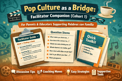 A companion experience for parents and caregivers supporting students enrolled in Palabras con Familia. Provides guidance on questioning strategies, discussion support, and how to respond to student writing without “doing it for them.”